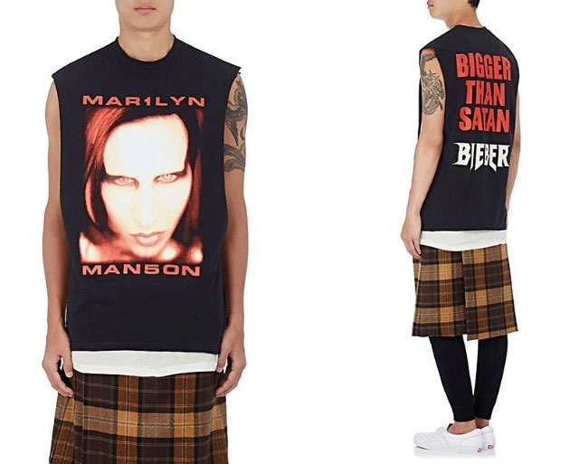 The $195 Barney's shirt, which shows Marilyn together with the phrase "Bigger Than Satan… Bieber" embroidered on the back, was allegedly created without Manson's permission despite the designer claiming they'd received his blessing.