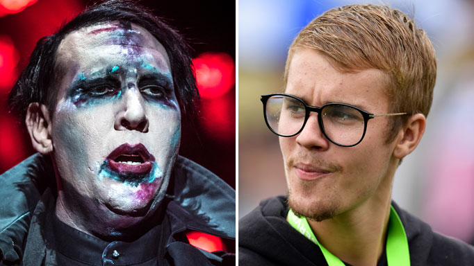 But alas, the 23-year-old 'Love Yourself' singer has managed to land in the rocker's bad books, after he began using Manson's image on the front of one of his merchandise T-shirts.