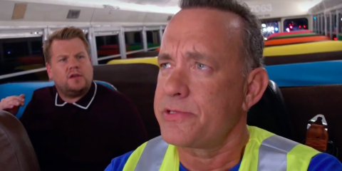 In the ultimate mini-episode of Carpool Karaoke, Tom Hanks joined James Corden for a sing-song – and as it was Tom Hanks, they couldn't just chuck him in any old car.