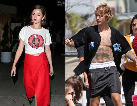 Justin Bieber was spotted shirtless at a soccer match with friends in Los Angeles on Saturday, while Selena Gomez was seen out on a night on the town.