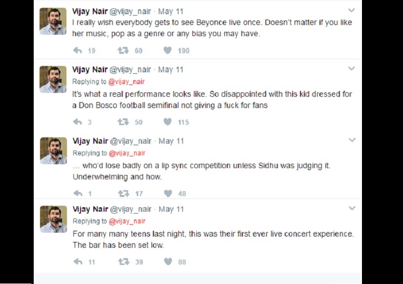 And then there was Only Much Louder (they're the folks behind the NH7 Weekender, among other things) founder Vijay Nair's series of tweets that we're reproducing here: